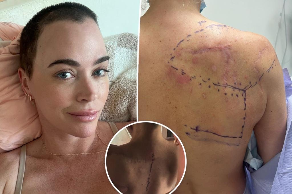 Whereas the physique artwork goes vertically down her backbone, it additionally covers a portion of her scar from when her medical doctors “lower out” a big space of her shoulder that was plagued with melanoma and “changed it with a flap of pores and skin” from her decrease again in January 2024.
